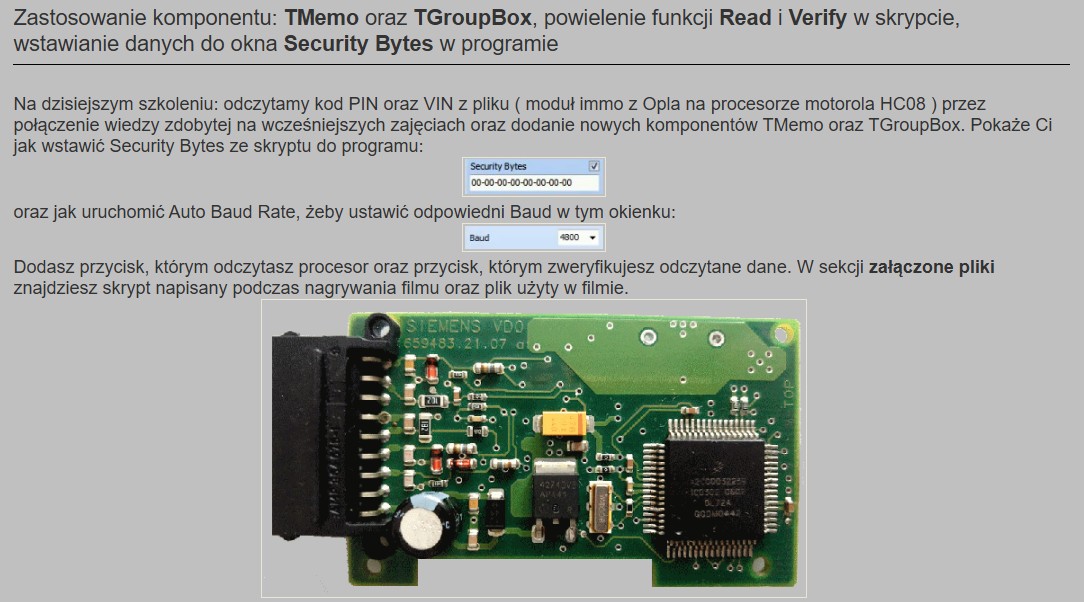 Lekcja 14 - Zastosowanie komponentu: TMemo oraz TGroupBox, powielenie funkcji Read i Verify w skrypcie, wstawianie danych do okna Security Bytes w programie